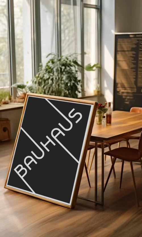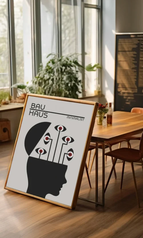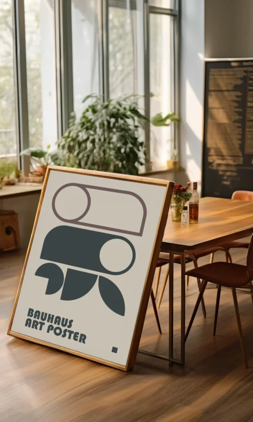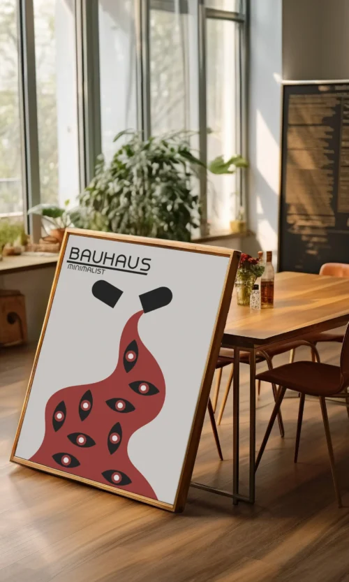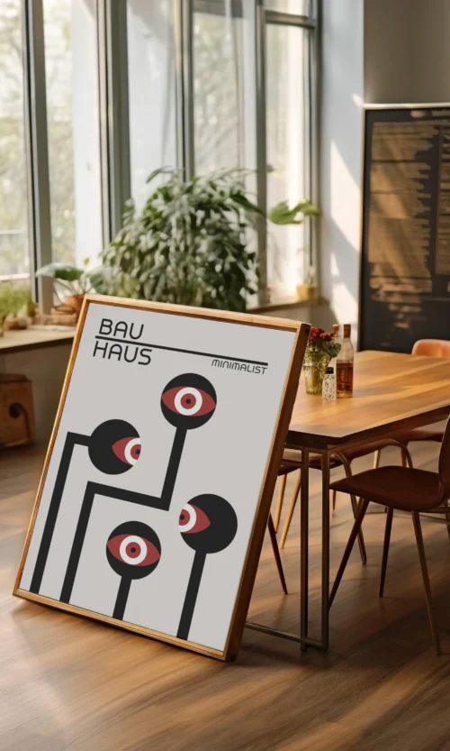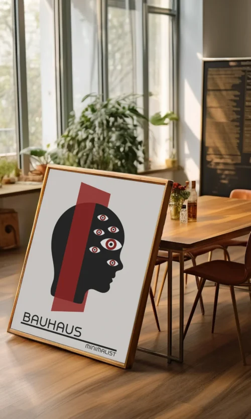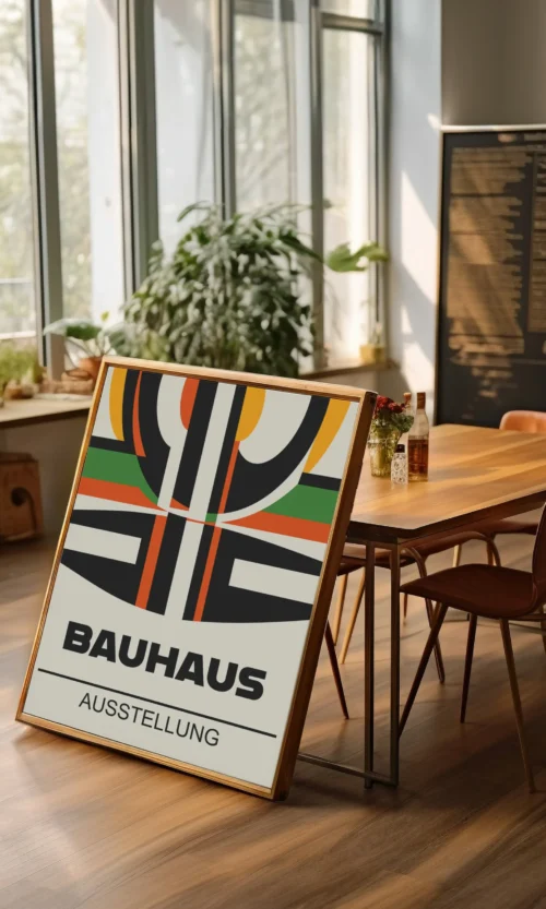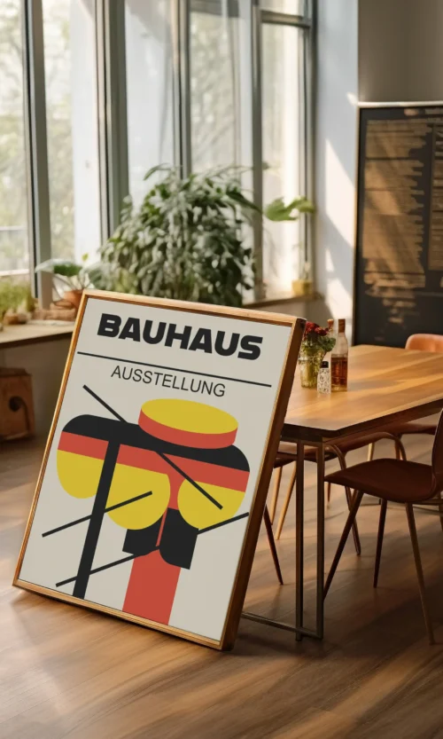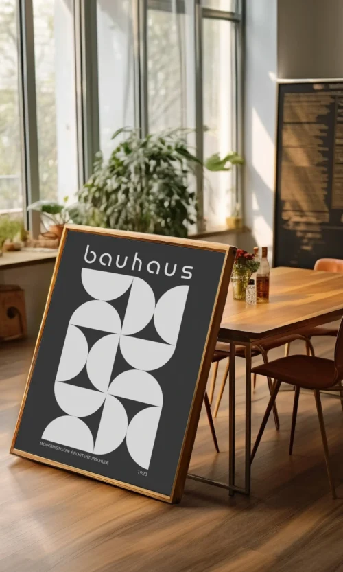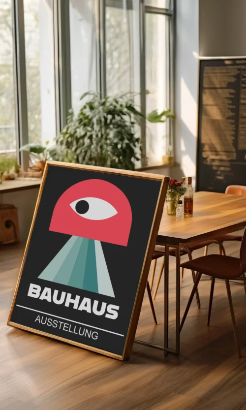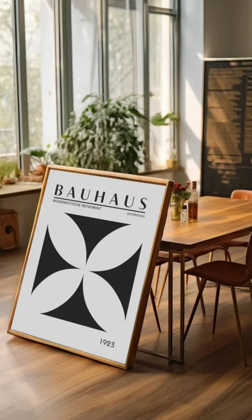 Sumérgete en la estética innovadora y revolucionaria de Bauhaus. Este icónico movimiento artístico alemán cambió la forma en que pensamos sobre el diseño, la arquitectura y el arte. Este poster es una celebración de la esencia de Bauhaus: líneas limpias, formas geométricas y un enfoque en la funcionalidad y la simplicidad.