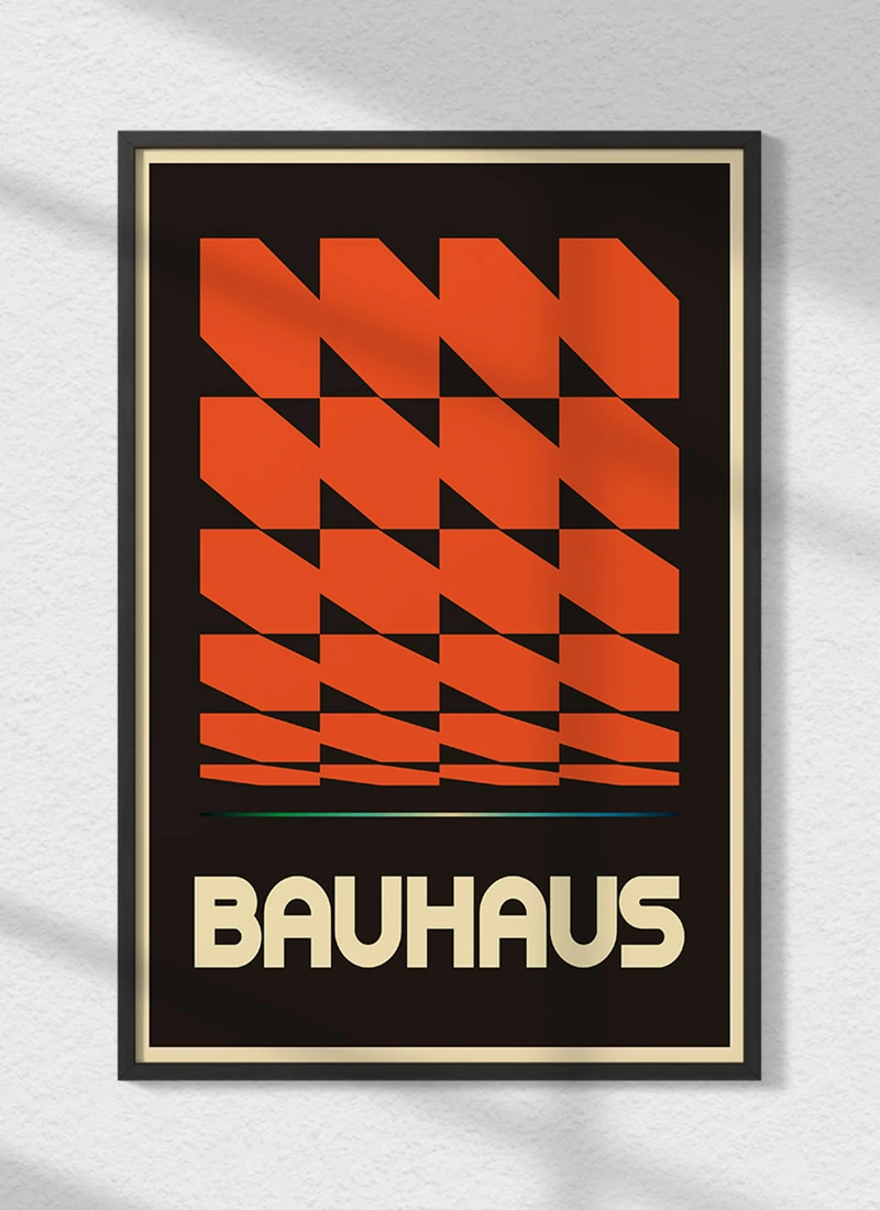 Sumérgete en la estética innovadora y revolucionaria de Bauhaus. Este icónico movimiento artístico alemán cambió la forma en que pensamos sobre el diseño, la arquitectura y el arte. Este poster es una celebración de la esencia de Bauhaus: líneas limpias, formas geométricas y un enfoque en la funcionalidad y la simplicidad.