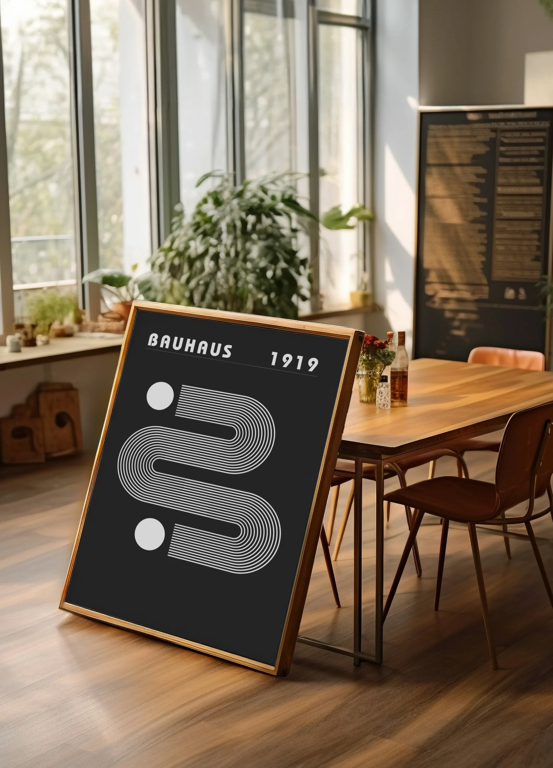 Diseño elegante y geométrico, este póster refleja la esencia del movimiento Bauhaus. Inspirado en la simplicidad y funcionalidad, combina líneas nítidas, formas vibrantes y una paleta moderna. Ideal para quienes aprecian la unión de arte y diseño, añade un toque vanguardista y atemporal a cualquier espacio.