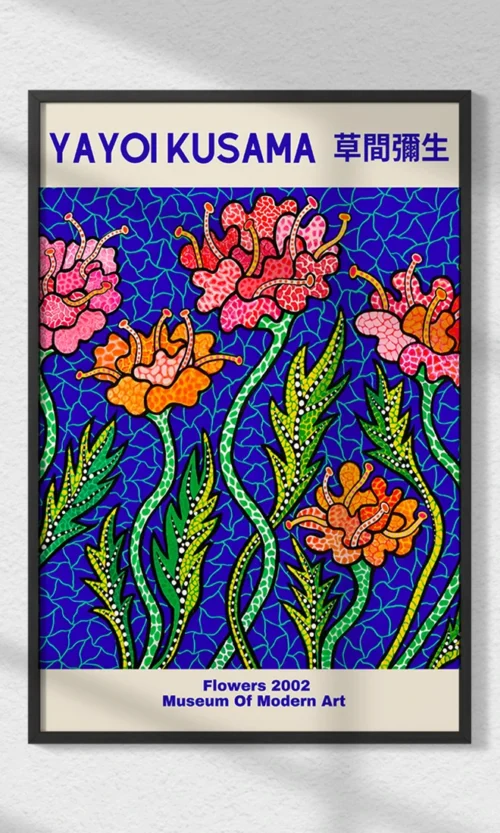 Sumérgete en el mundo infinito de Yayoi Kusama con este vibrante póster. Con su explosión de colores y la repetición característica de lunares, refleja su energía creativa y visión única. Ideal para quienes buscan llevar la estética inconfundible de Kusama a sus espacios, es un portal a su maravilla visual.