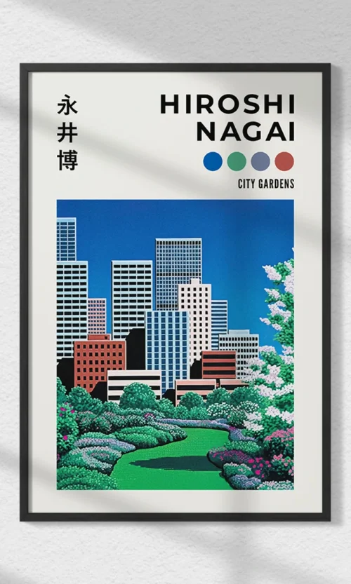 Déjate transportar por la magia de Hiroshi Nagai, maestro en capturar la nostalgia y el dinamismo de paisajes urbanos con su distintiva paleta vibrante. Cada detalle, cuidadosamente trabajado, transforma lo cotidiano en composiciones cautivadoras. Este póster lleva la poesía visual de Nagai a tus espacios con energía y sofisticación.