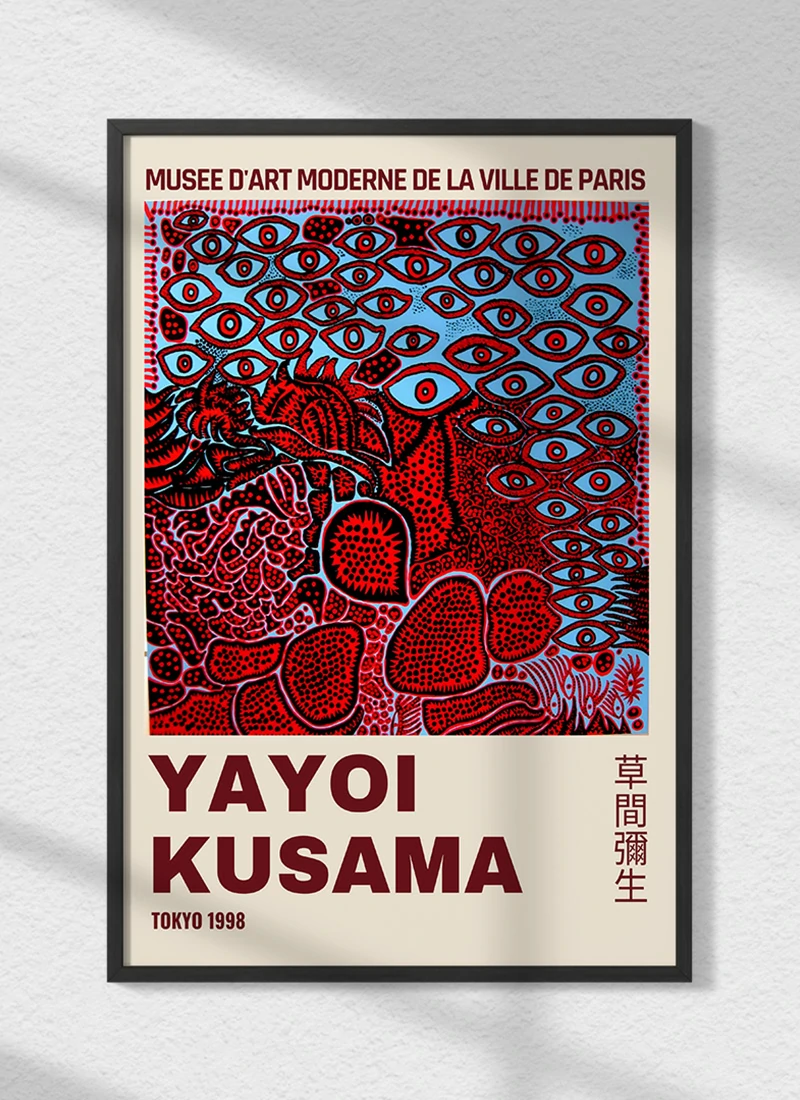 Sumérgete en el mundo infinito de Yayoi Kusama con este vibrante póster. Con su explosión de colores y la repetición característica de lunares, refleja su energía creativa y visión única. Ideal para quienes buscan llevar la estética inconfundible de Kusama a sus espacios, es un portal a su maravilla visual.